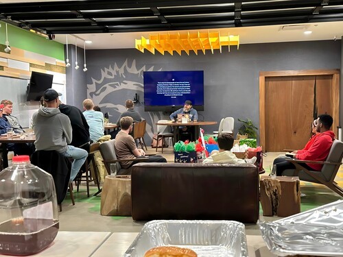 Bible and book study, every Wednesday evening for Bible class, every Thursday night for our online "The Rabbit Hole" study, and every Sunday for worship and Bible class. We also gather for different activities during the semester - plays, movies, bowling, cards, game nights, etc.